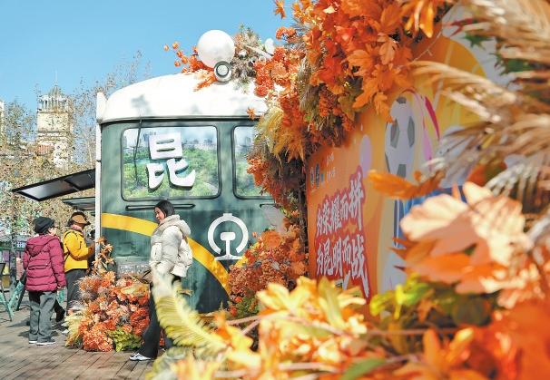 游客在昆明老街打卡拍照。 本报记者 高吴双 黄兴能 摄